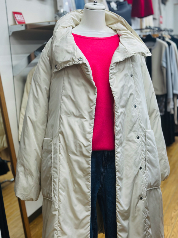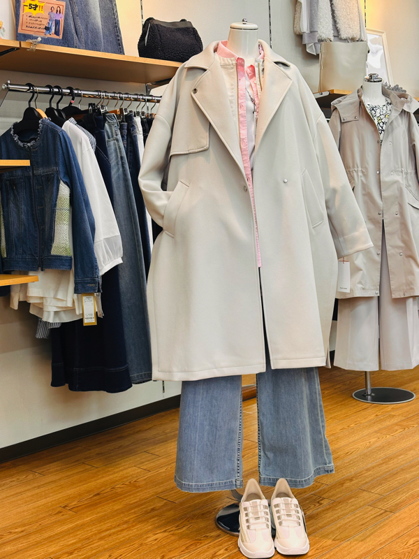 こちらのコート、色はどちらもやさしいベージュ。
