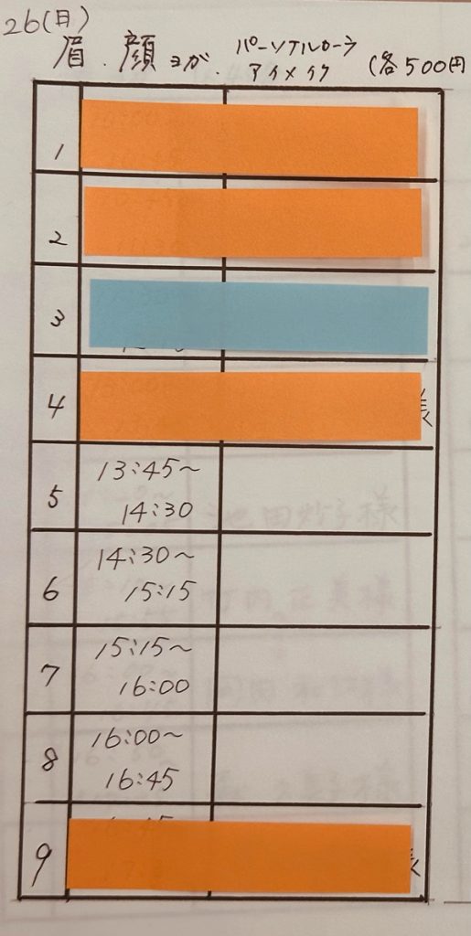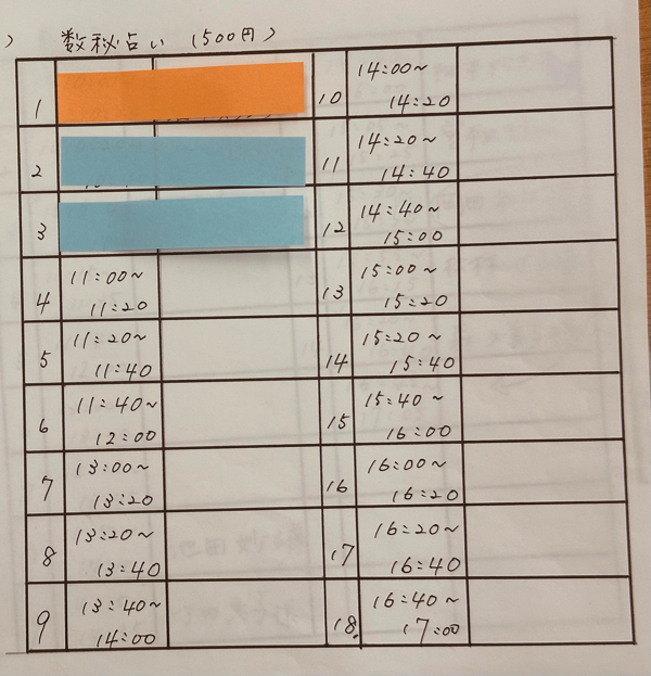 さて、昨日までの創業祭イベントの予約状況です。早い時間から少しずつ埋まっています。皆さんもどうぞお早めにお電話ください♪