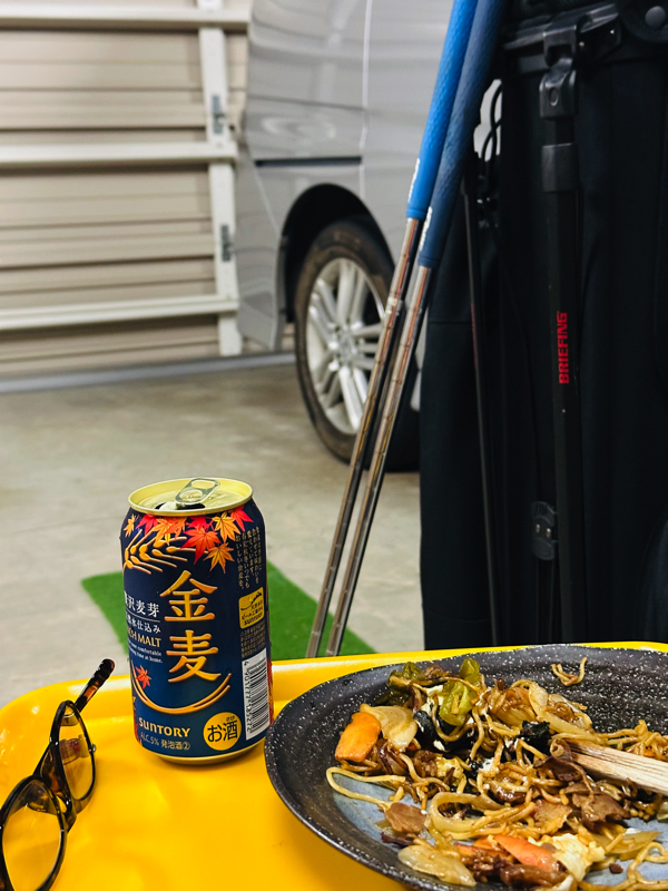 忙しがっていて、練習場にも行けてなかったので、仕事が終わってからインドアで素振り!(もちろん飲みながら🍶笑)