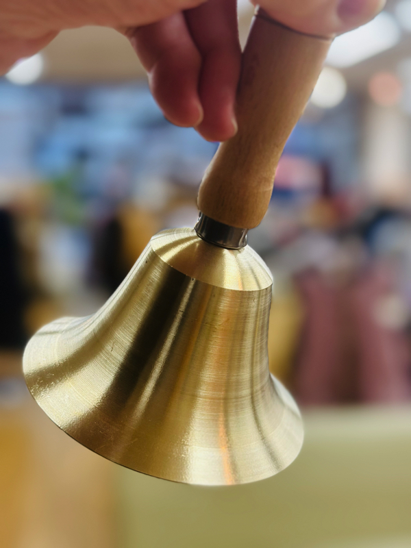 カランカラン♪突然の鐘の音にビックリするやら嬉しいやら♪