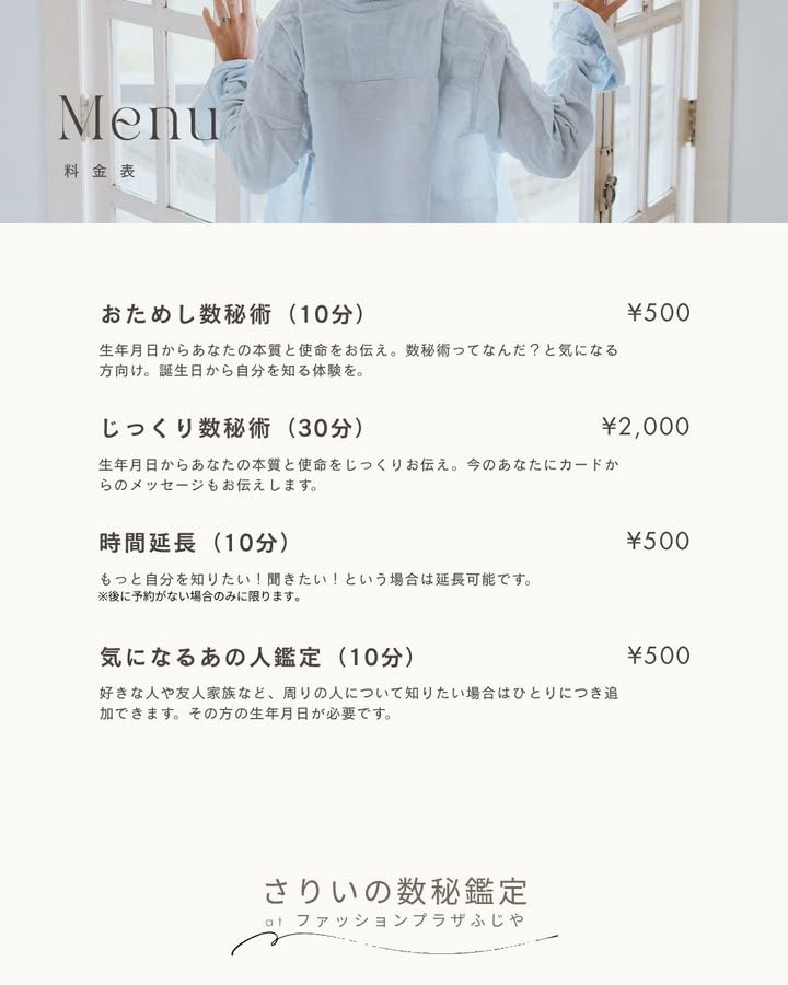さて、さて、9日の日曜日は「さりいさん」が数秘占いに来てくれます。