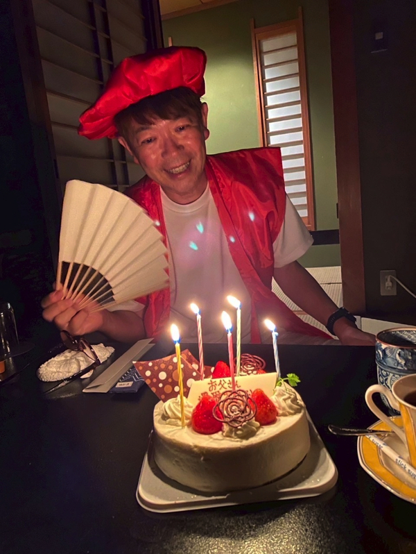 60歳還暦。熱海で家族全員に祝ってもらいました。健二感激!